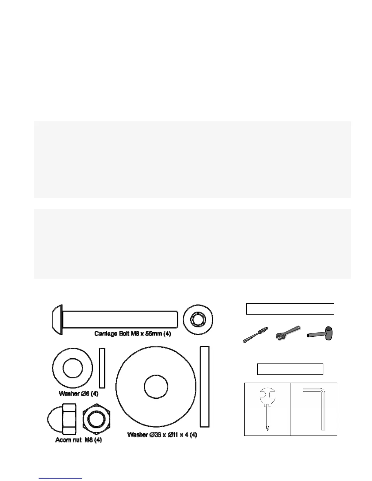 In addition to the included, assembly may require a Phillips screwdriver, an adjustable wrench, and a rubber