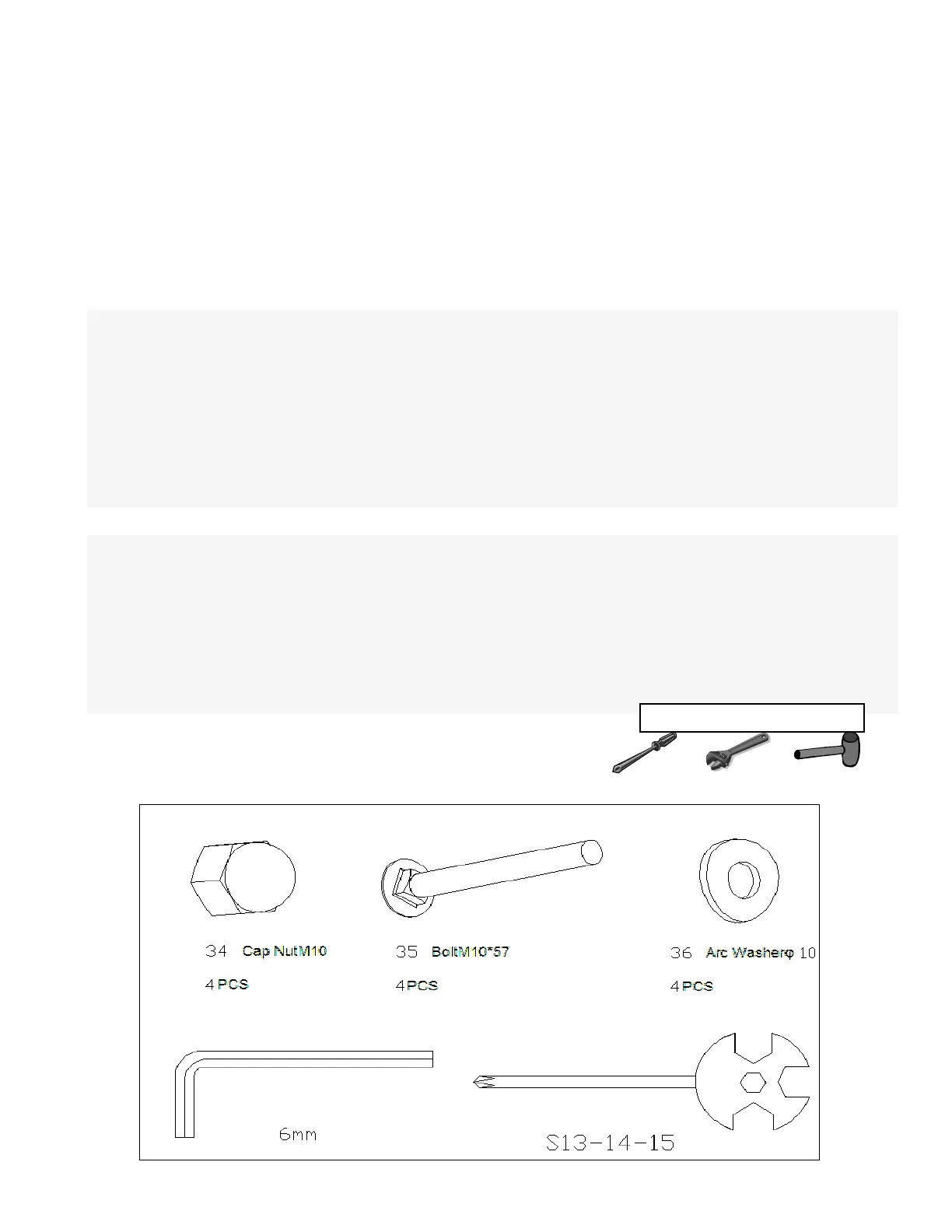of the packing materials until assembly is completed. See below a list of hardware that is included with your product.