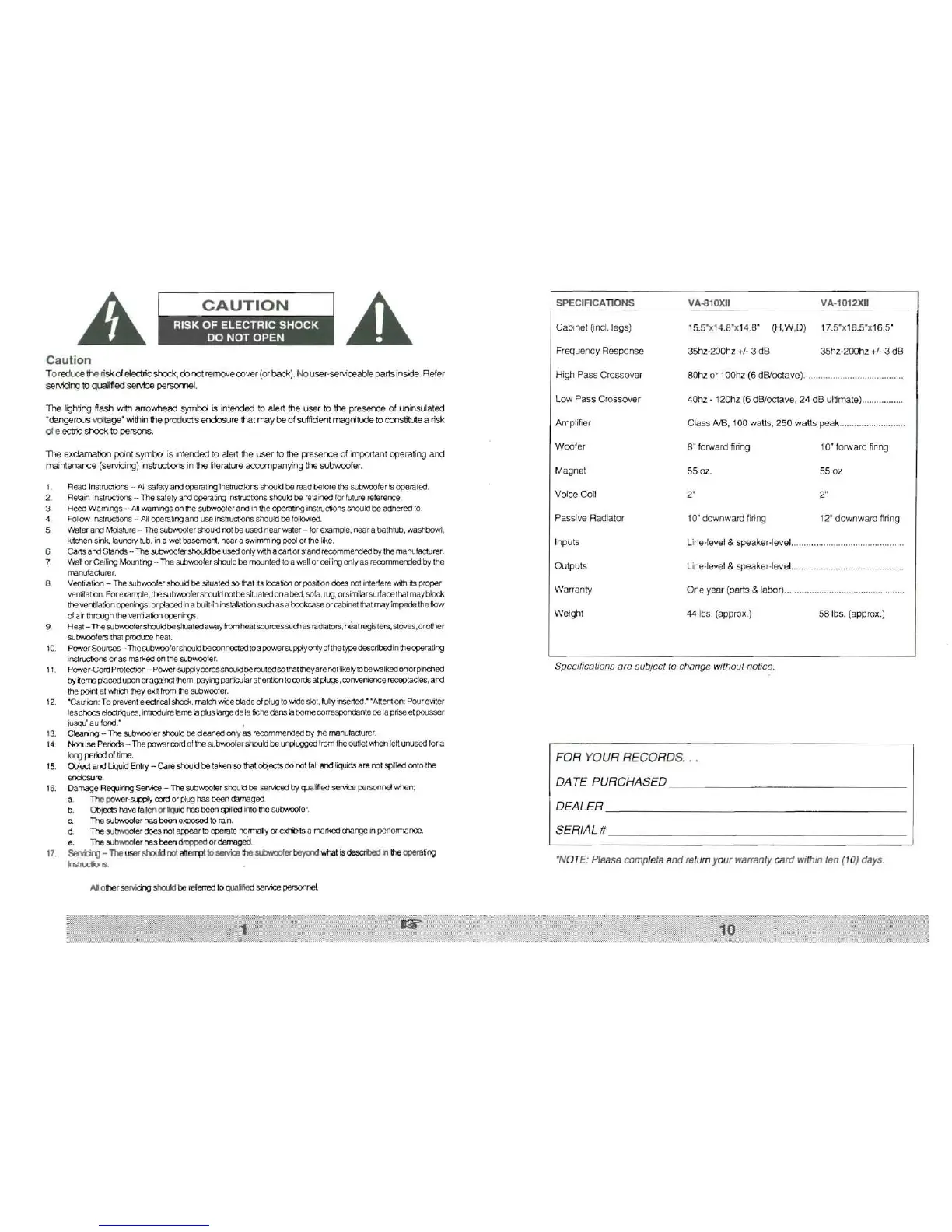 literature accompanying the subvvoofer.