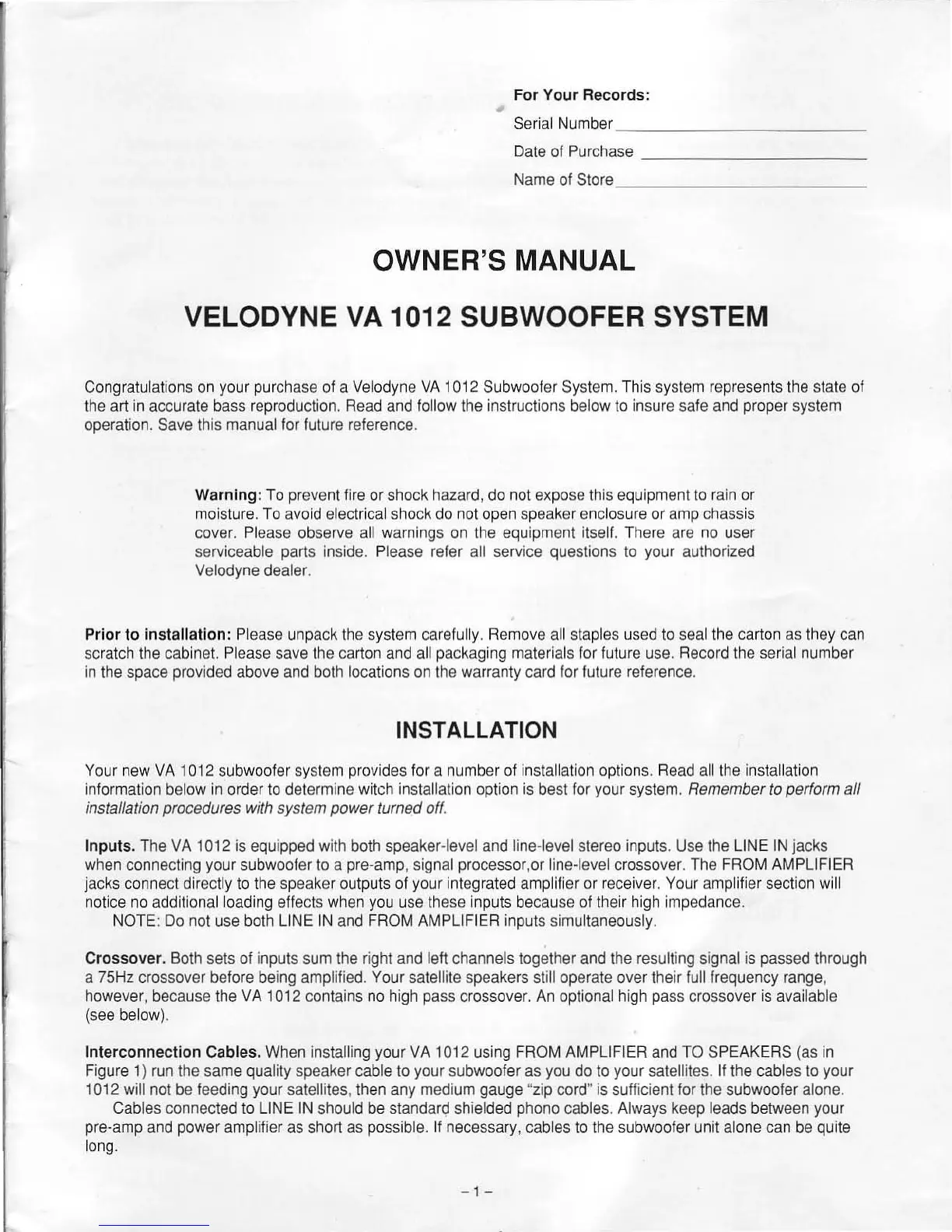 12 subwoofer system provides for a number of installation options. Read all the installation