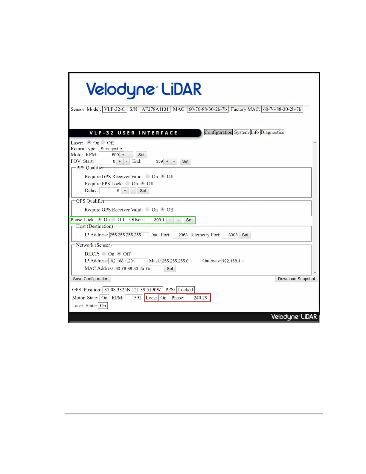 When setting the phase lock offset for two or more sensors, Velodyne recommends the sensors be configured to fire at