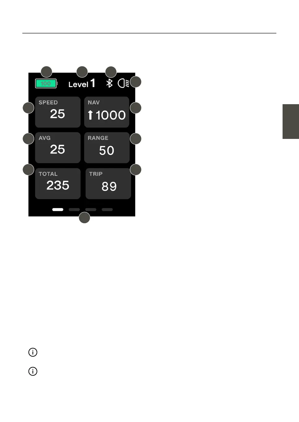 Zeigt die Strecke an, die du mit deinem Akkustand zurücklegen kannst. Beachte dabei, dass die Reichweite des Akkus durch das zu tra-