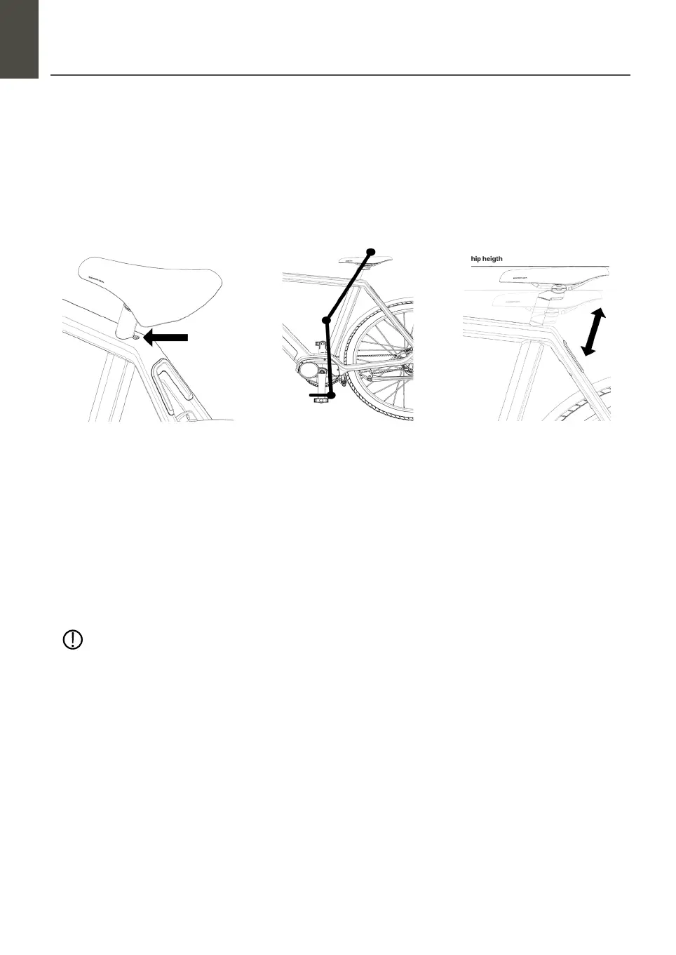 Never extend the seatpost above the markings on the boom of the seatpost, as this might result in damage. If you feel the