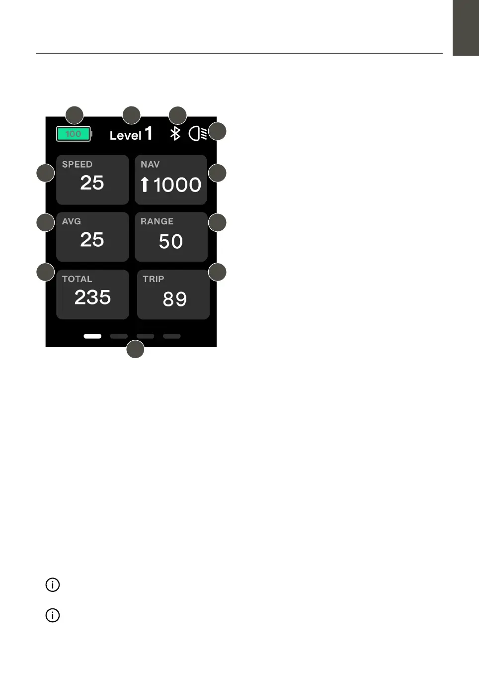 Indicates the distance you can ride with your baery level. Keep in mind that the baery range can be highly impacted by carrier weight,