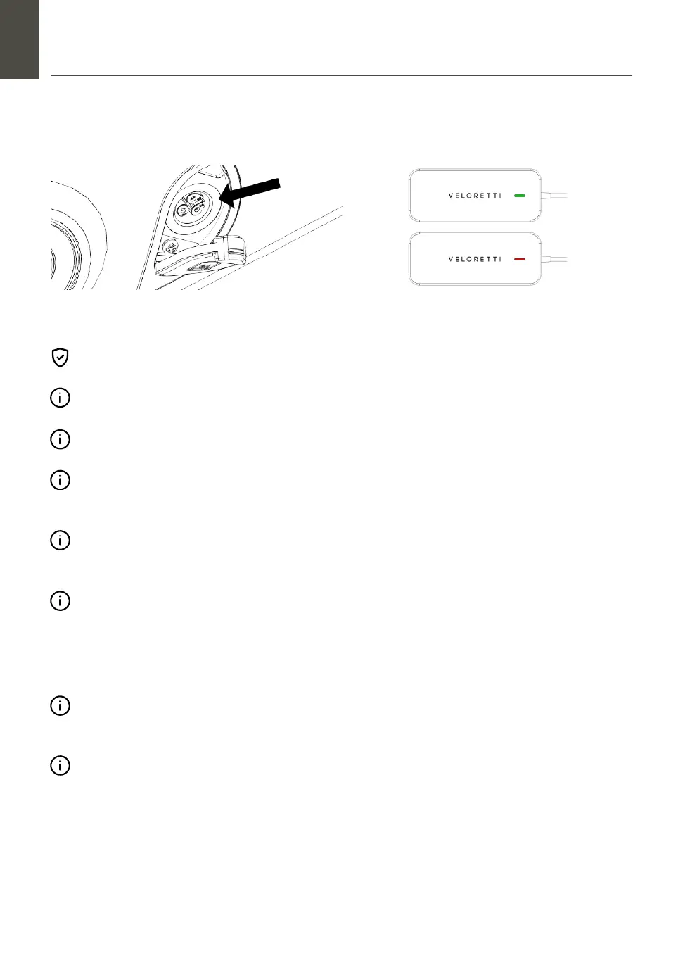 colors. If the diode lights up in green the baery is fully charged. If the LED lights up red, you should charge the baery before your