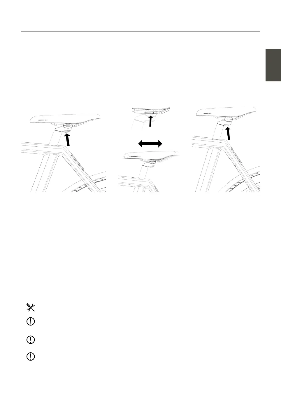 Do not exceed the ‘end markings’ on the saddle rails. These show the maximum position the saddle can move forward or