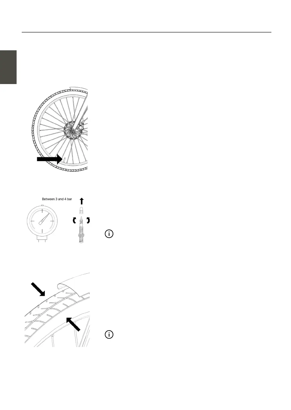 Plaats de pomp over het ventiel en vul de banden tussen 3 en 4 bar.