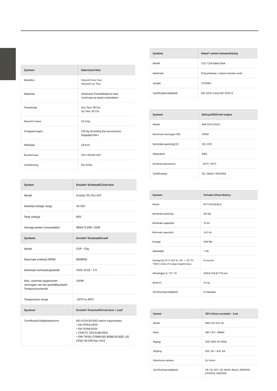 Veloretti Ace Two - Technische Gegevens