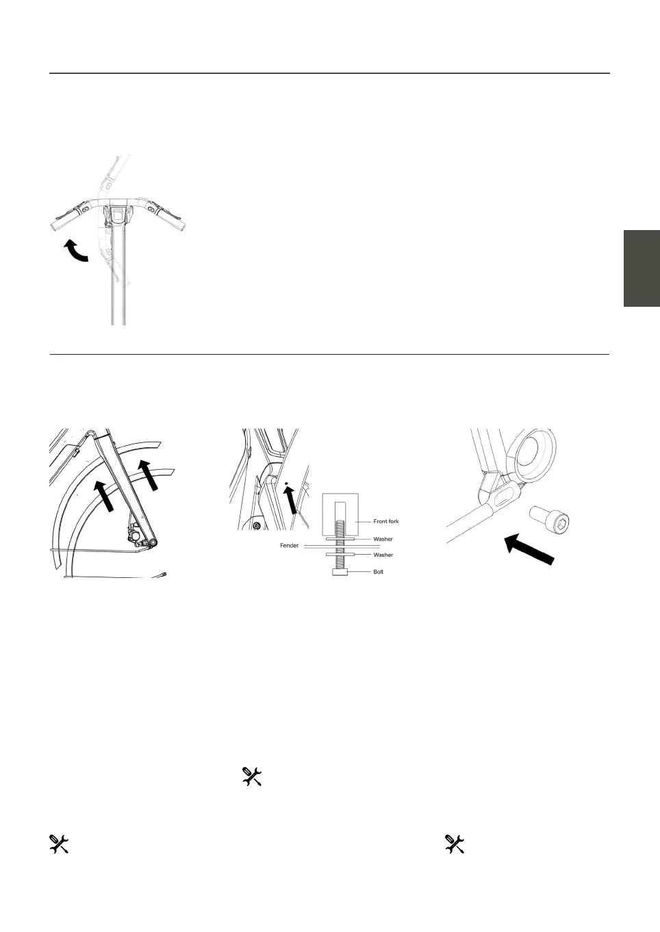 Die Vorderradgabel und der Lenker werden in einer um 90° gedrehten Position in den