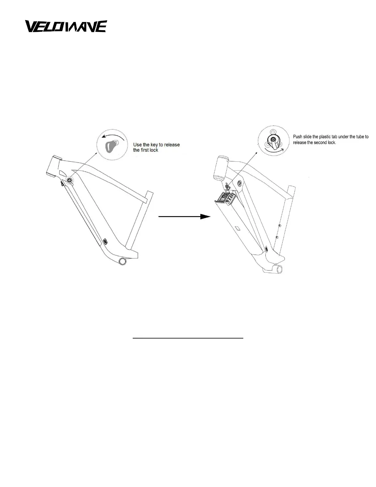 2) The battery is secured with a double-lock mechanism. Use the key to release the first lock.