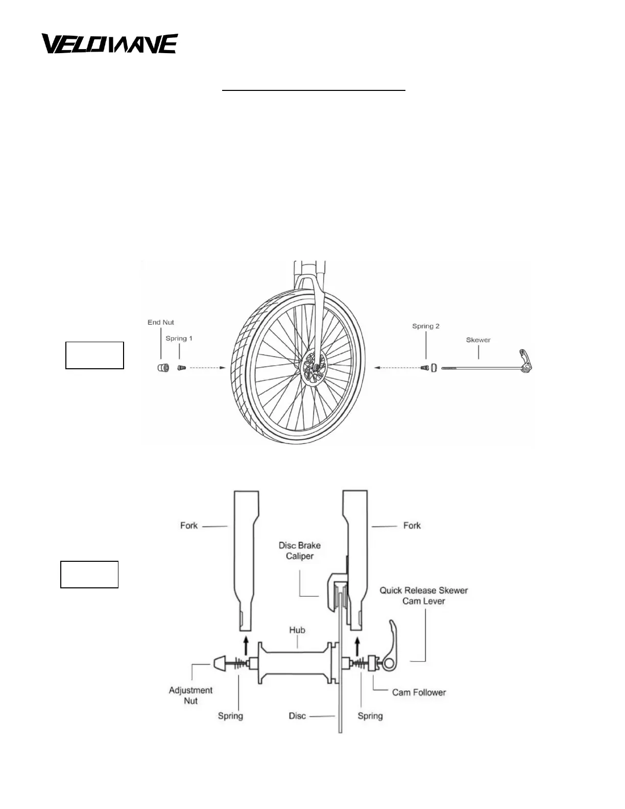 3) Insert the skewer into the wheel axle as seen shown. Keep the spring, cam follower, and lever