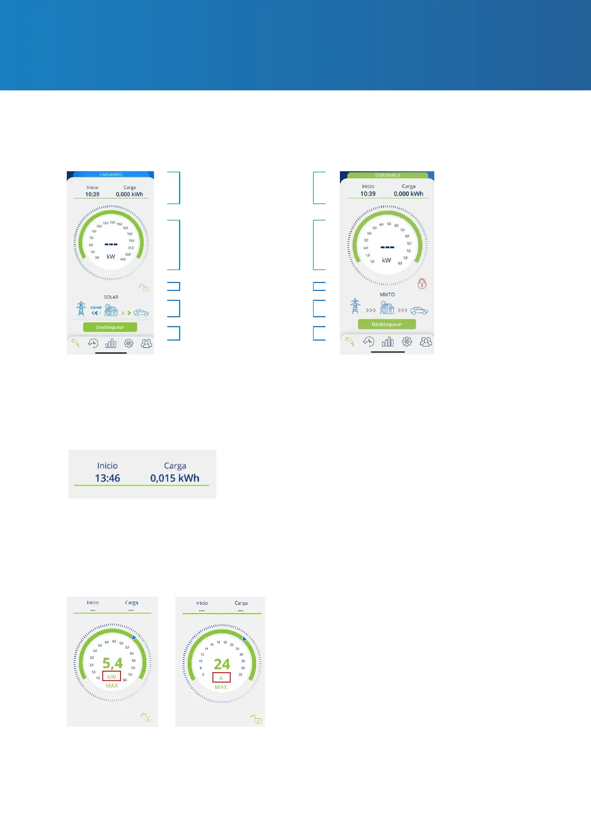 • Carga: muestra el consumo acumulado de la recarga en curso, medida en kWh.
