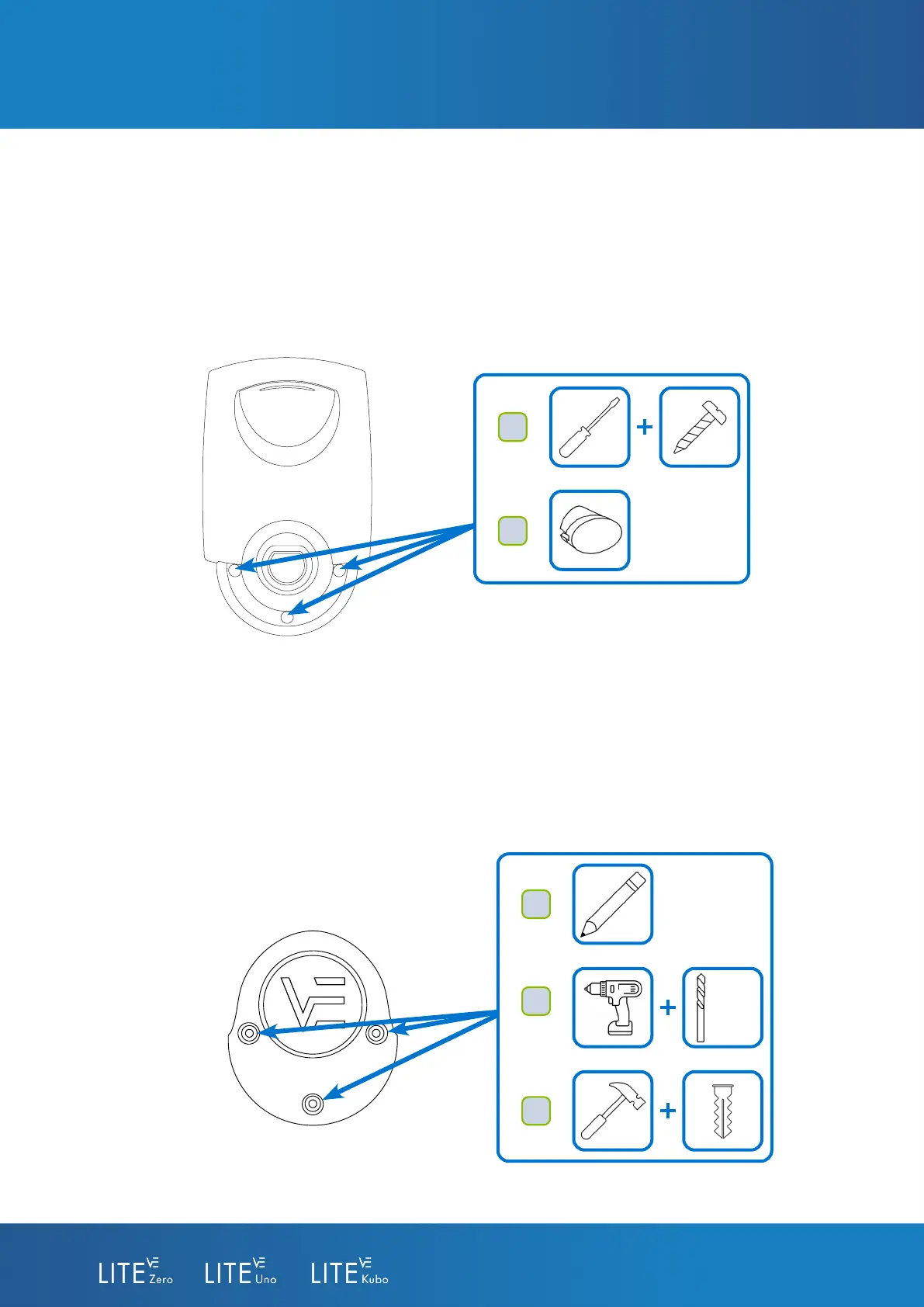 1. Fit the three screws on the lower part of the charger and tighten them rmly.