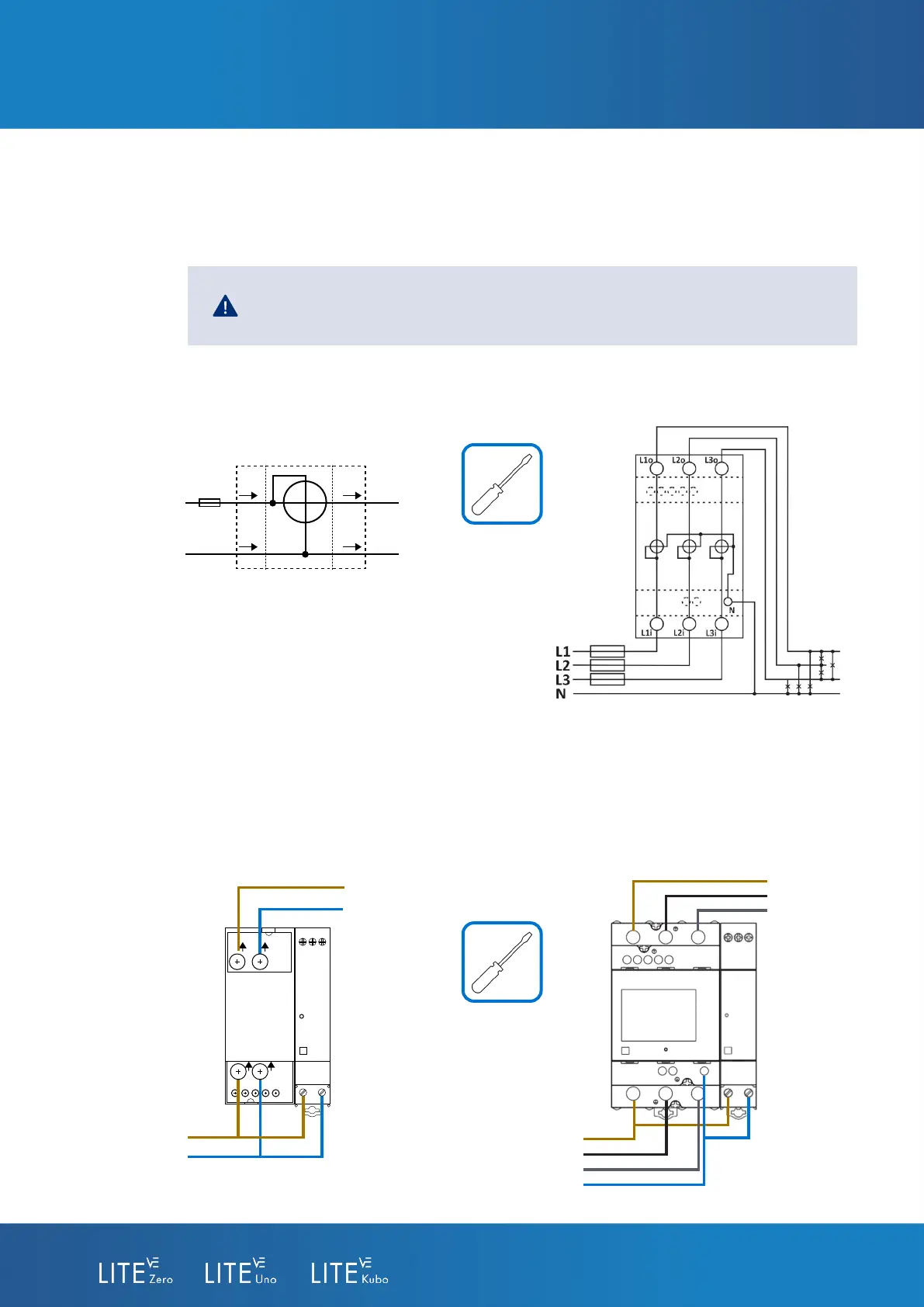 4. Place the power and neutral cable contacts in the energy meter and tighten the