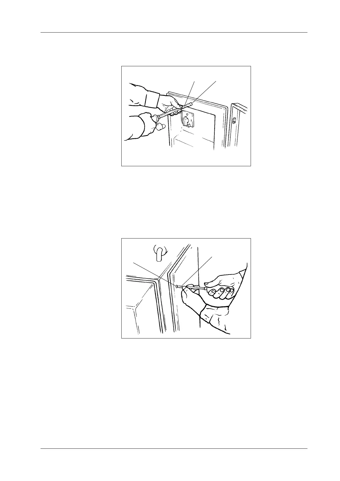 • Undo the assembly bolts (1) of the service hatch using screwdriver (2)