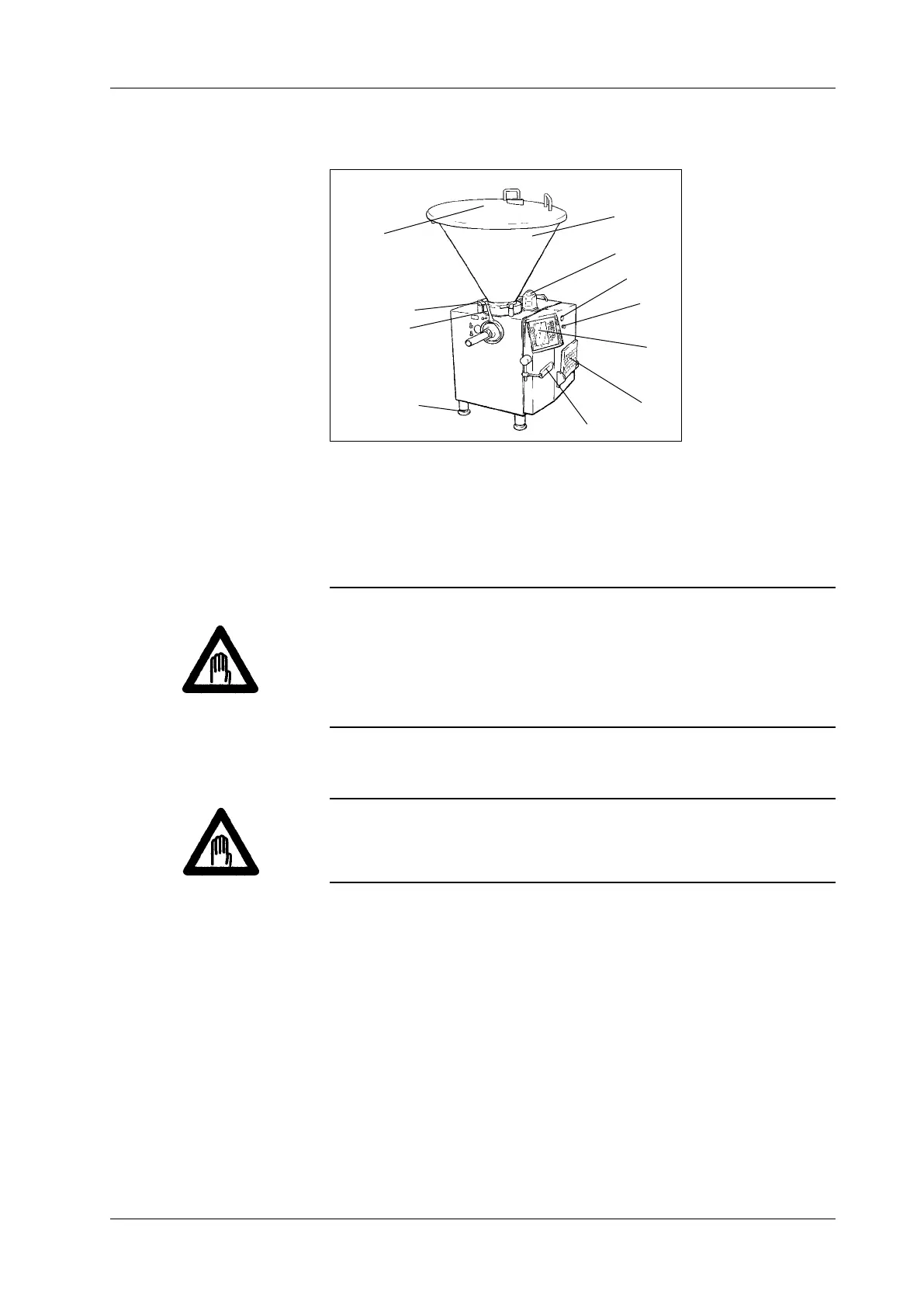 prevent injury (risk of crushing). Grasp the hopper only at the ange to tip