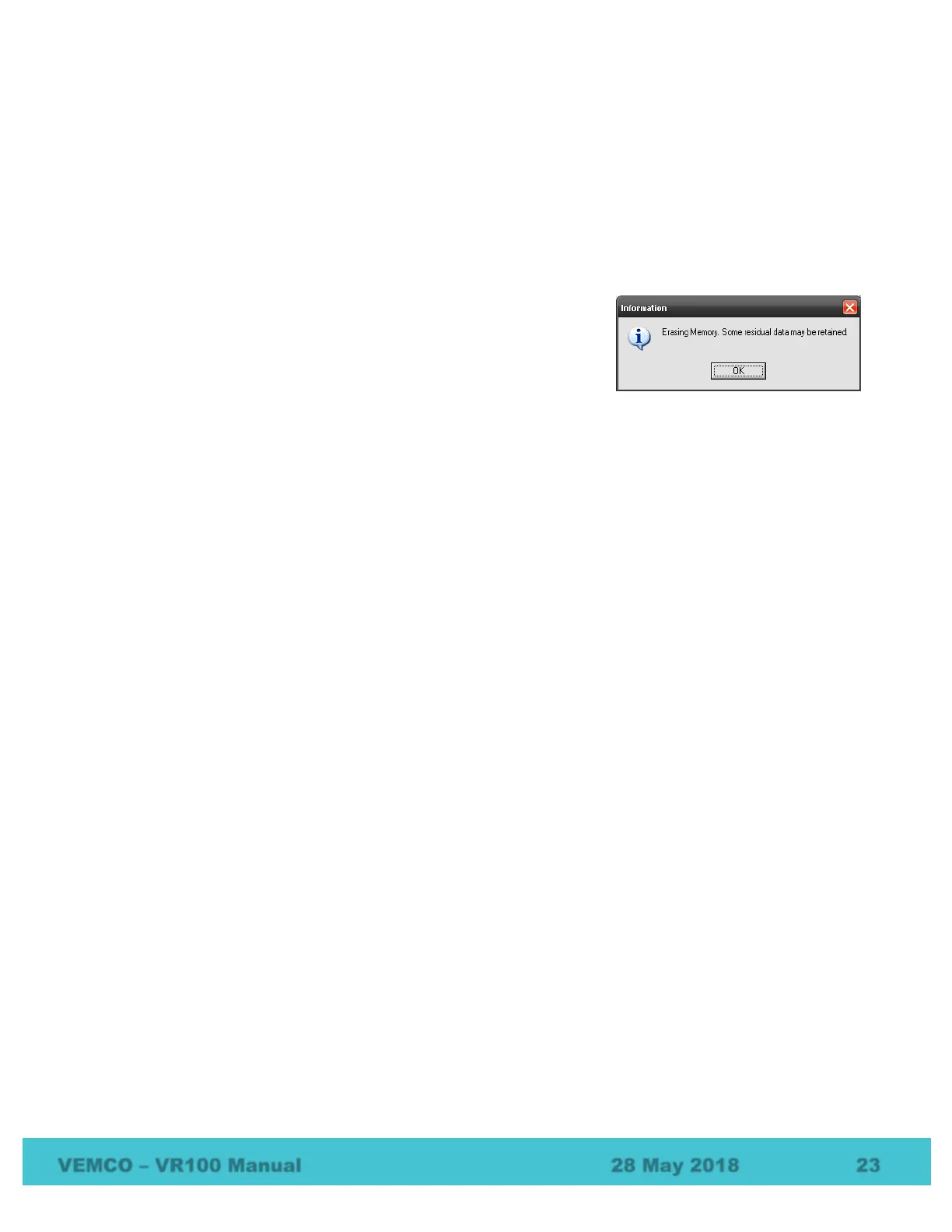 reminder to upload the data from the VR100, if you want to keep the data, before erasing the memory.