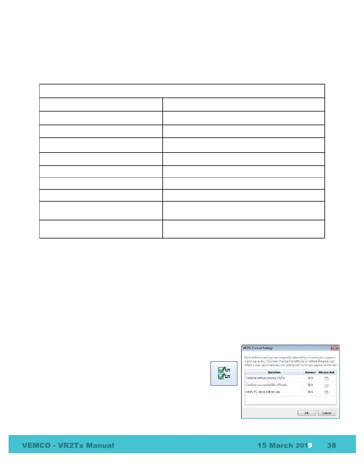 example, if “Confirm before closing VR2Tx” is selected, then a query will