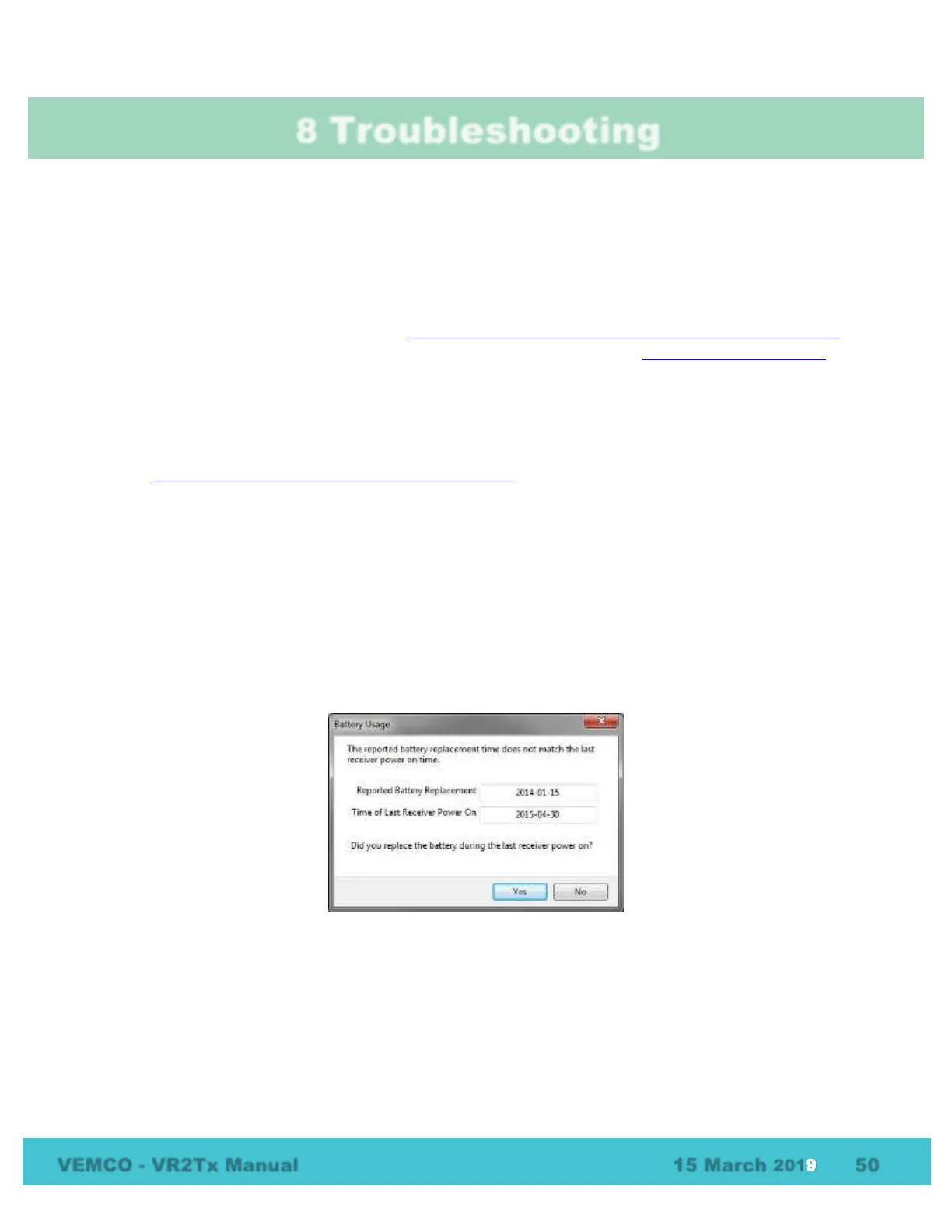 it may be necessary to receive RMA information and send the unit back to VEMCO for assessment/repair.