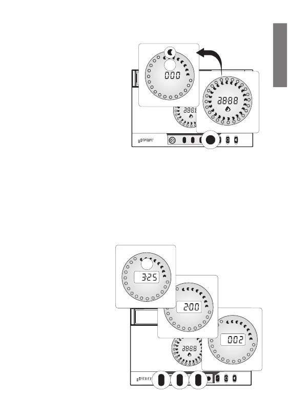 • Display shows default programing with graphic segment flashing on “0:00”