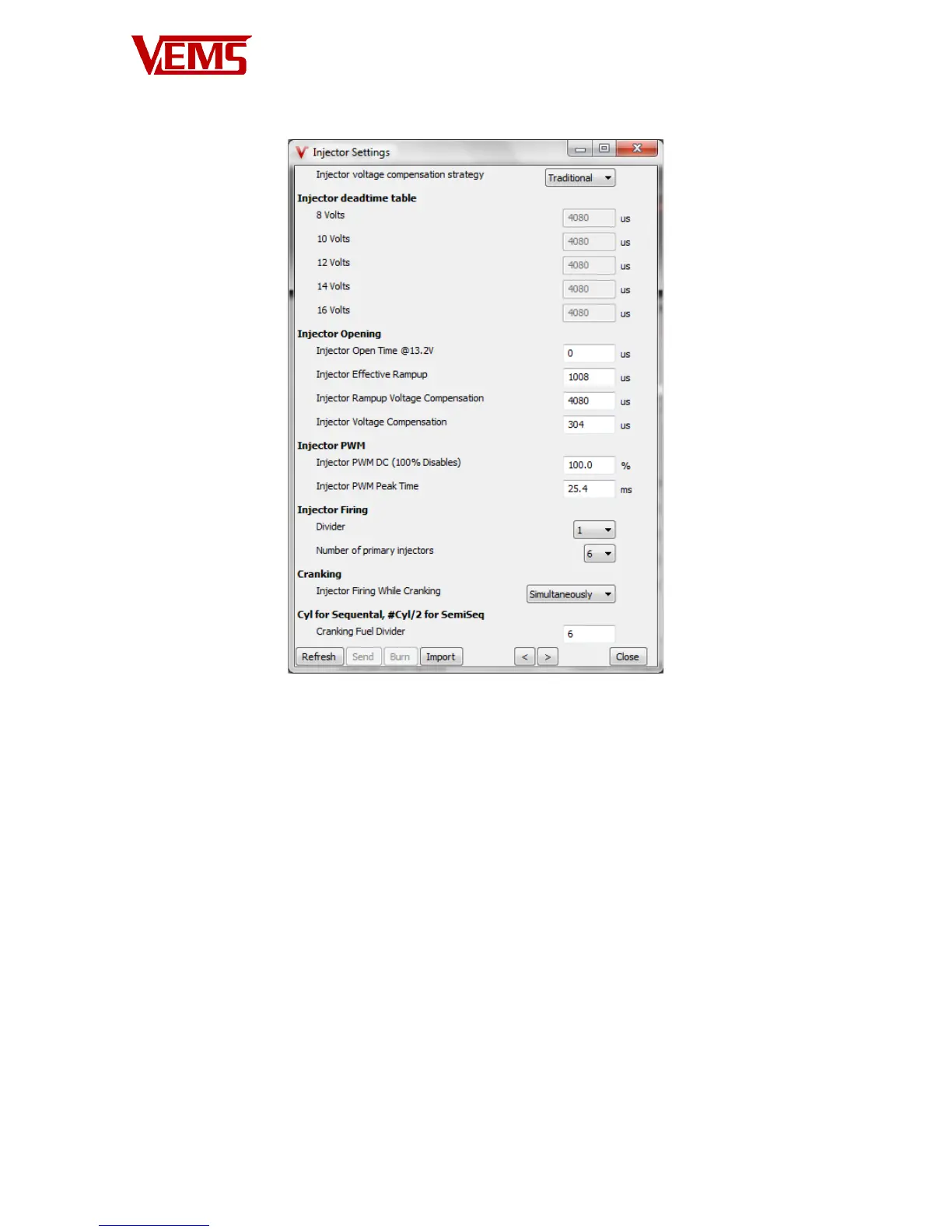 impedance injectors, PWM DC should be 100% and Peak Time should be 25.4ms.