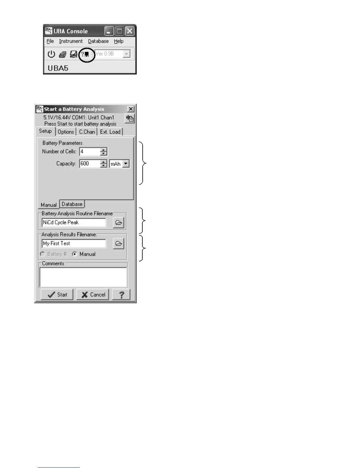 Figure 11: UBAConsole: Starting a battery analysis. Click on the circled icon.
