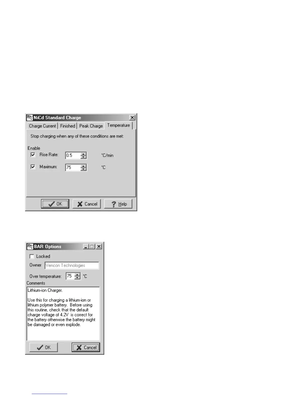 charging to be controlled by temperature then you'll need to set this in the BAR. For NiCd/NiMH charging, open the