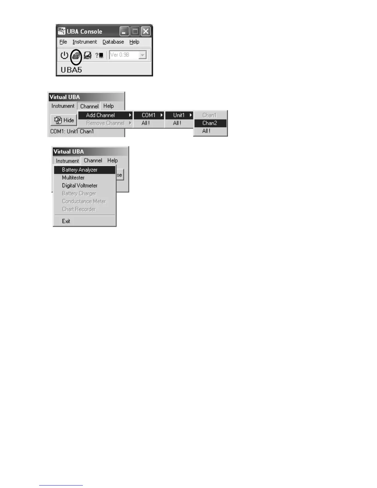 3. Then start a battery test on the virtual UBA by clicking on the Instrument menu: