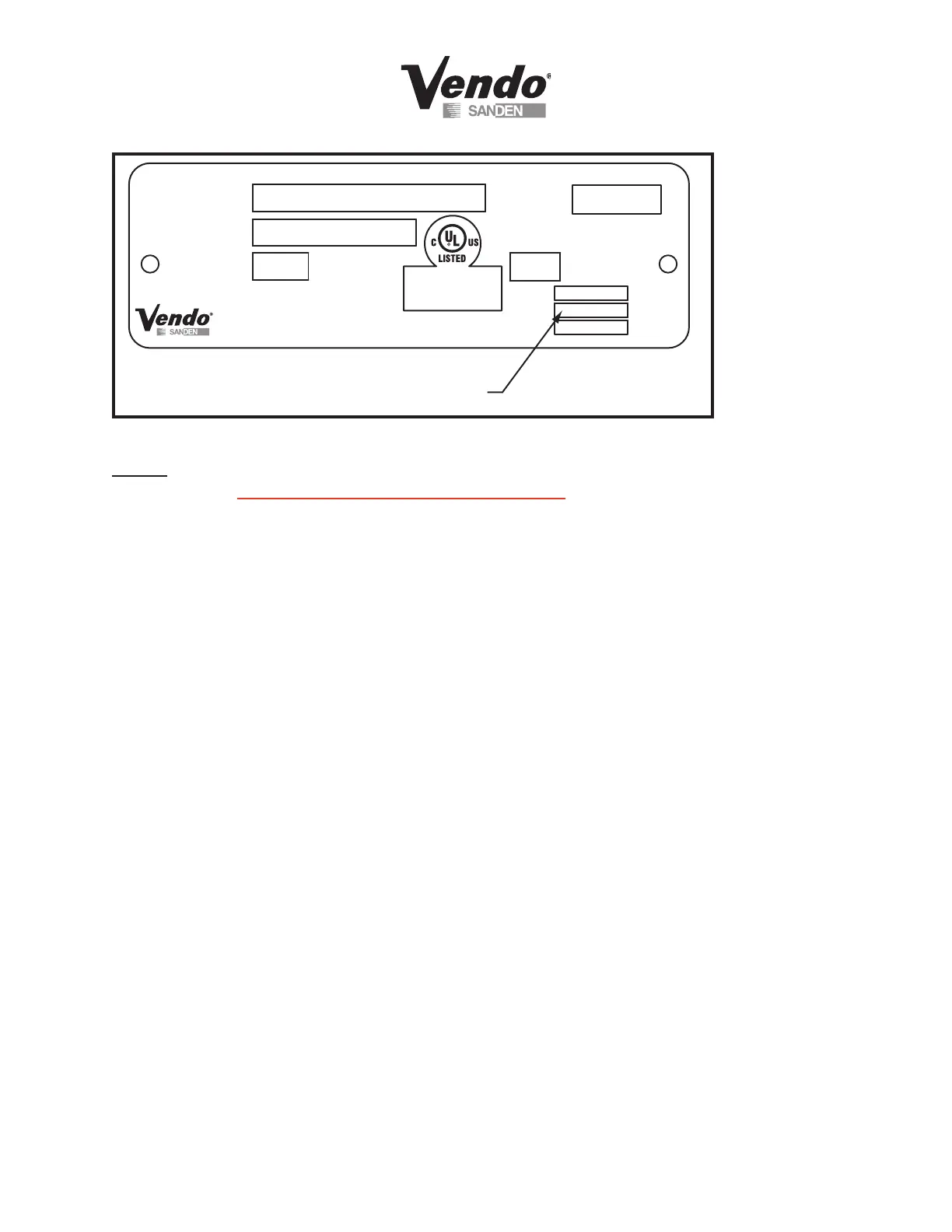 NOTE: The Model number of the vending machine is located on the top, left hand corner of