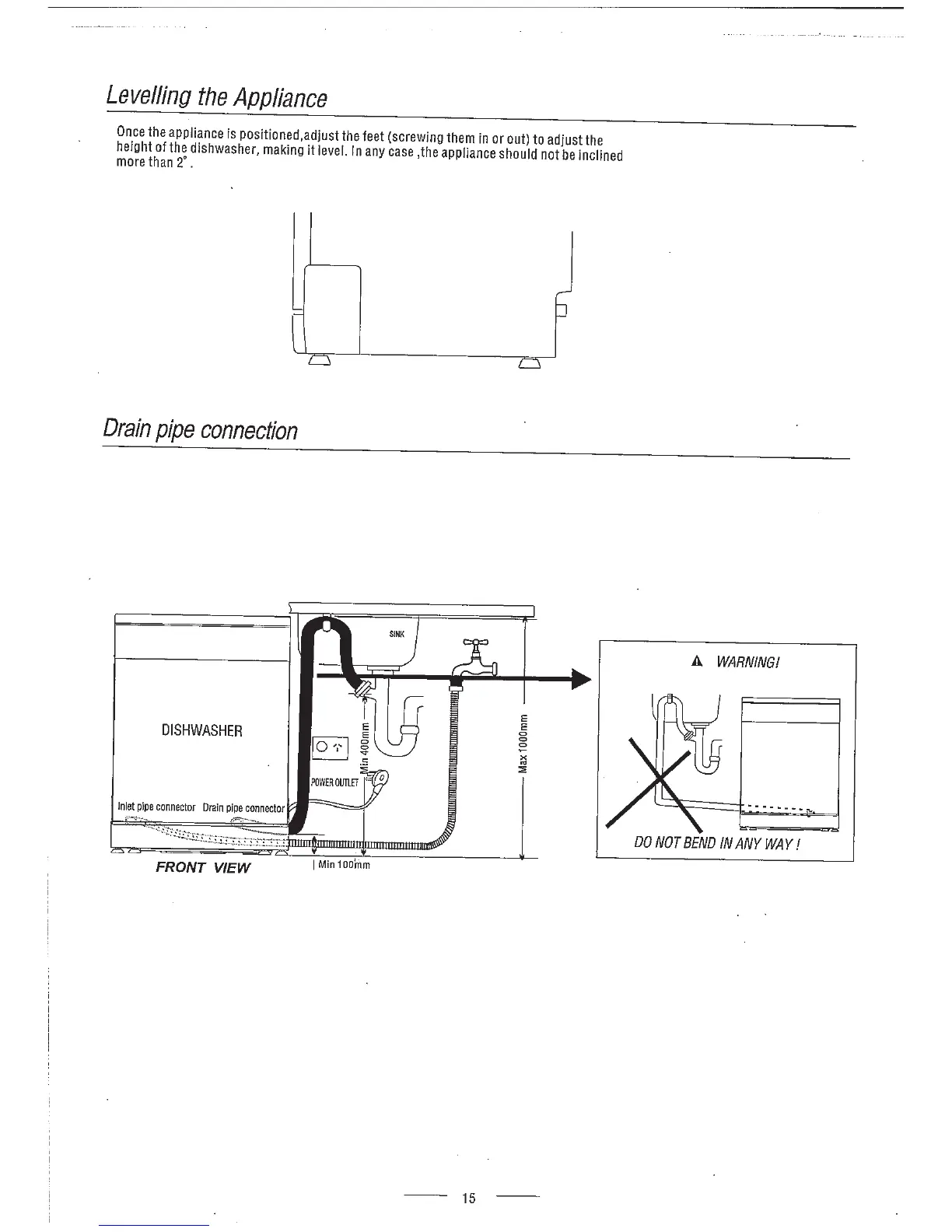 Veneto CSDW60SS - Levelling the Appliance; Drain pipe connection