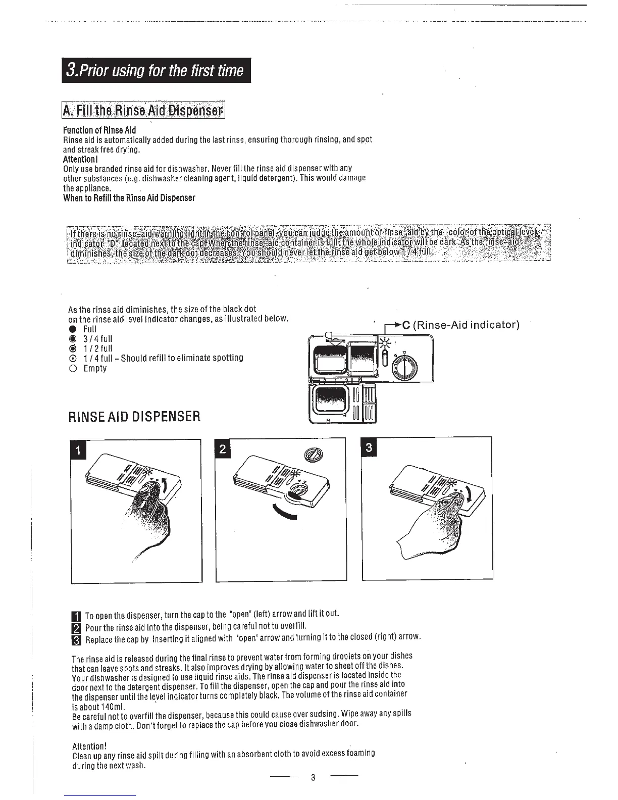 Veneto CSDW60SS - Prior using for the first time; A. Fill the Rinse Aid Dispenser