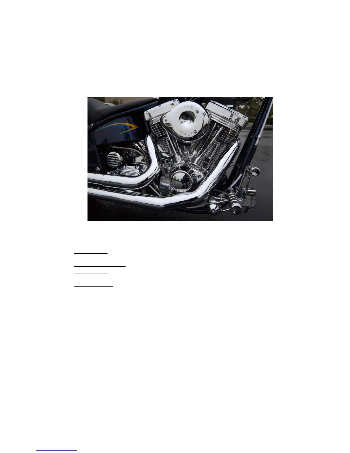 The powertrain of your Vengeance Motorcycle consists of four components: