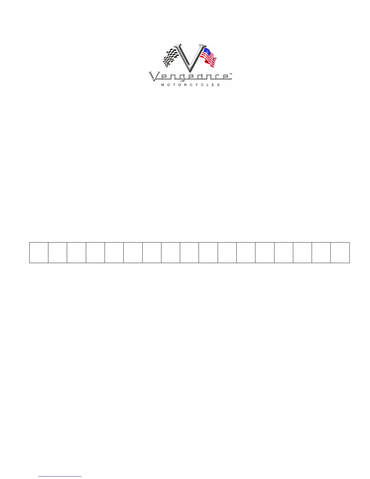 authorization from Vengeance Motorcycles. Please notify Vengeance Motorcycles of any change in the information on this form.