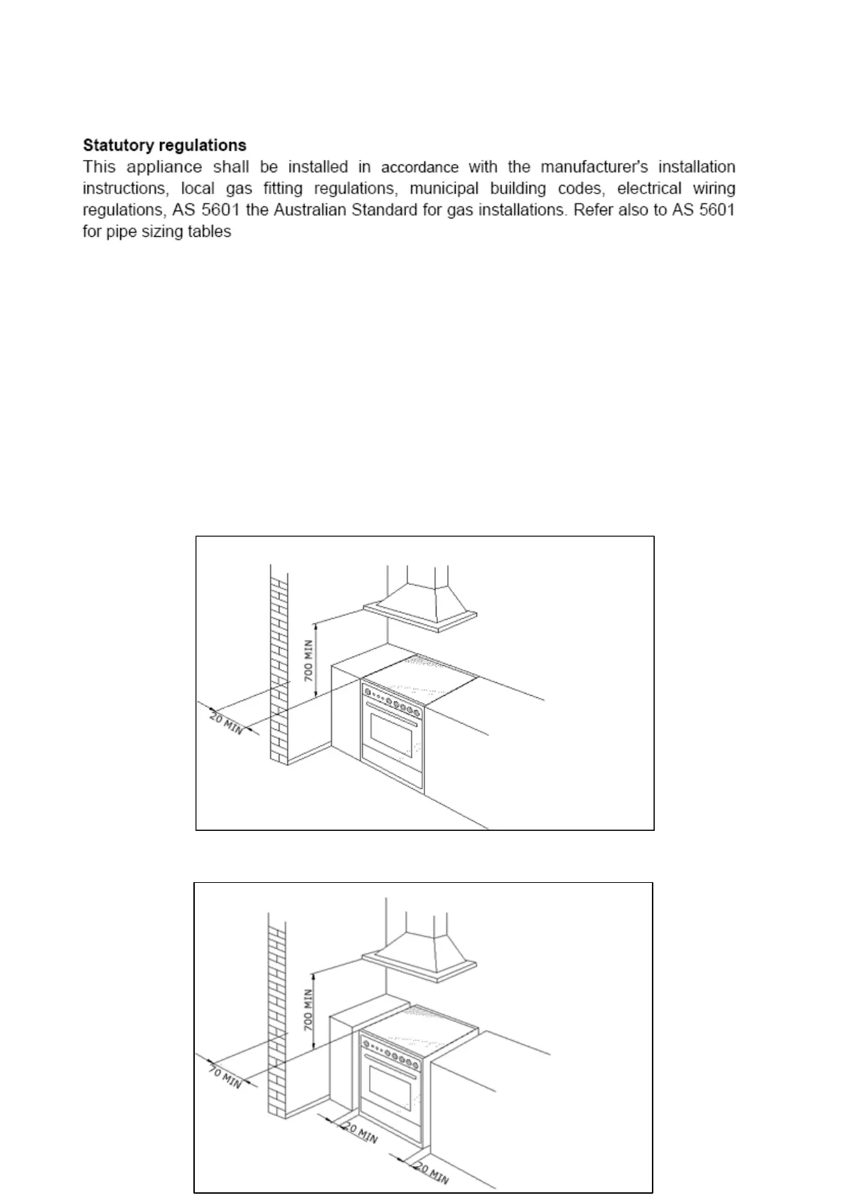 The appliance can be installed as a freestanding unit, next to a wall at a distance of no less than 20mm (Fig.2,