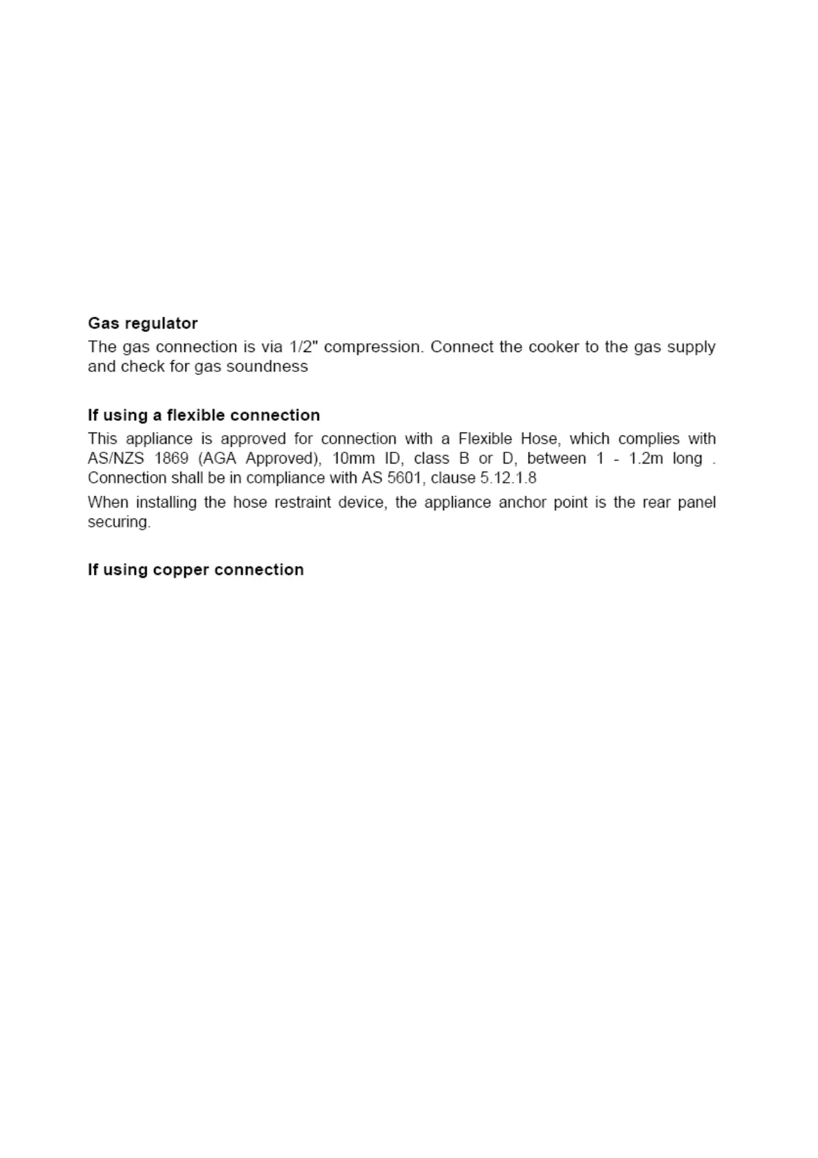 To connect the appliance to the gas network with a flexible rubber hose, a supplemental hose nipple fitting is needed
