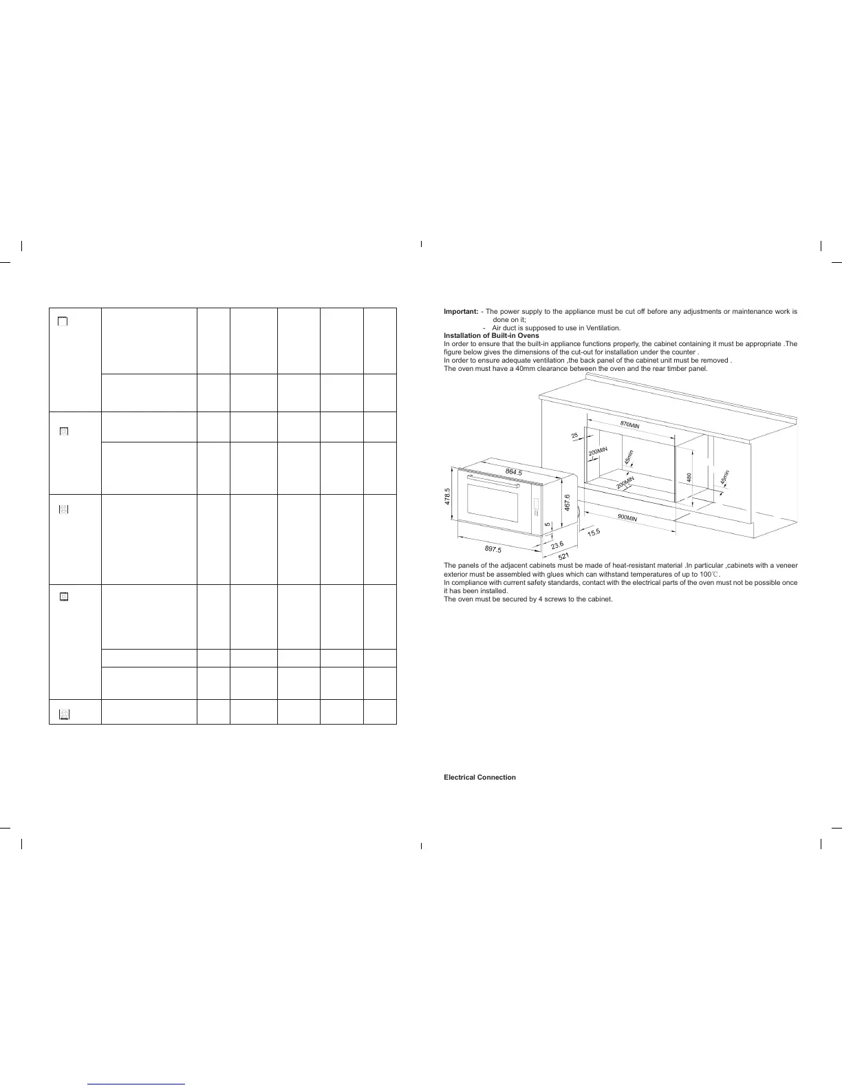 In order to ensure that the built-in appliance functions properly, the cabinet containing it must be appropriate .The