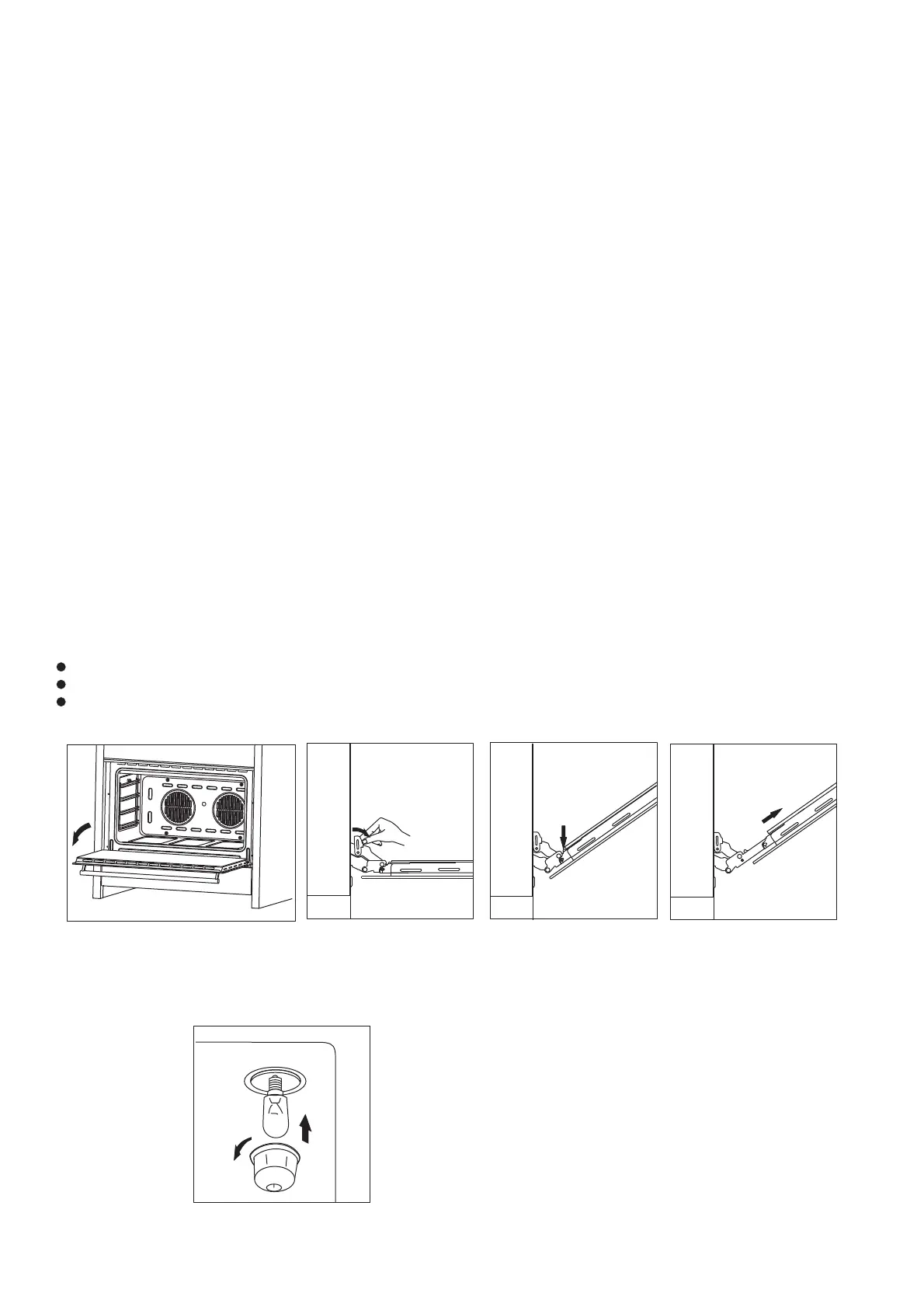 Once the oven has been electrically disconnected, unscrew the glass protection cap and the bulb, Always