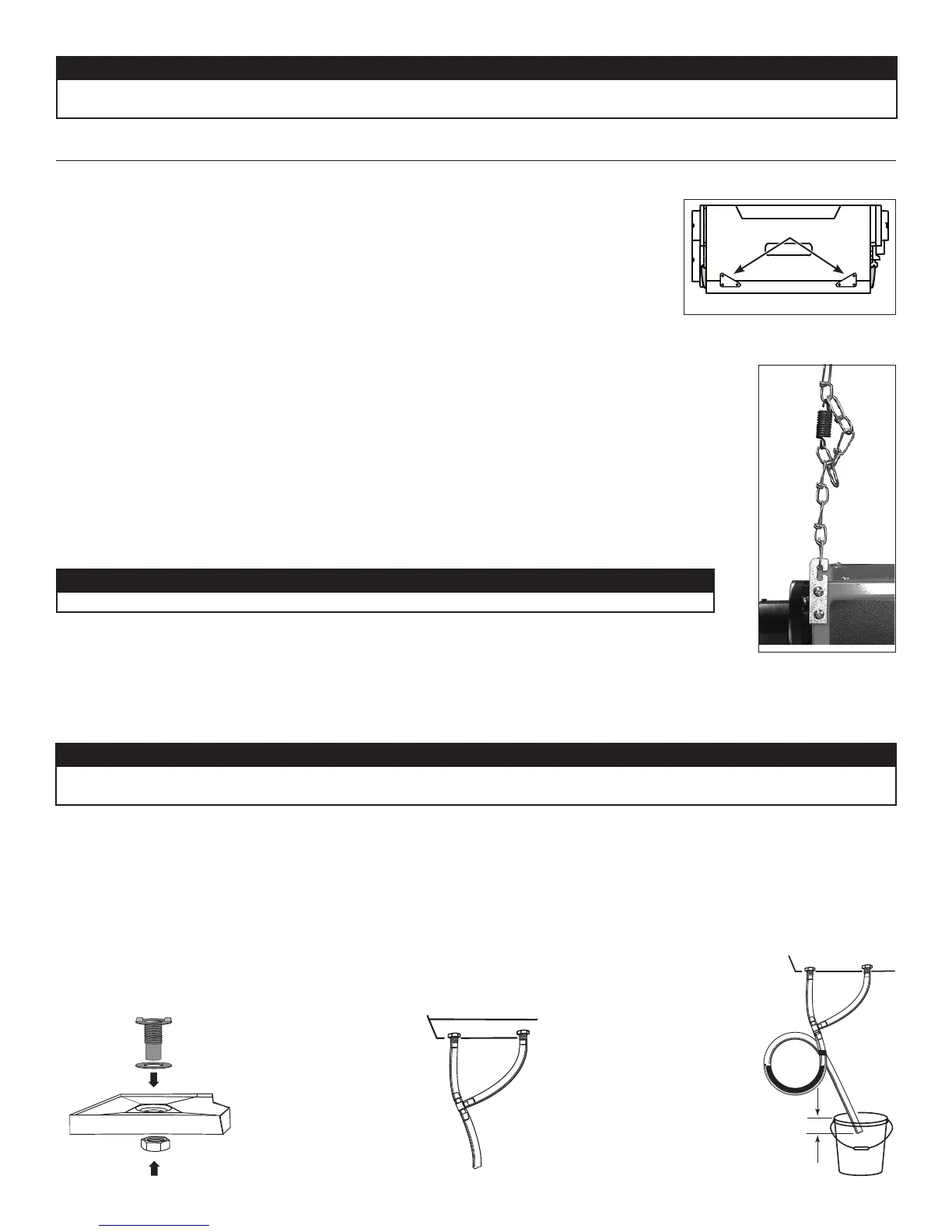 Hang the unit with the 4 chains and springs provided (see illustrations at right). If needed, the hooks can be