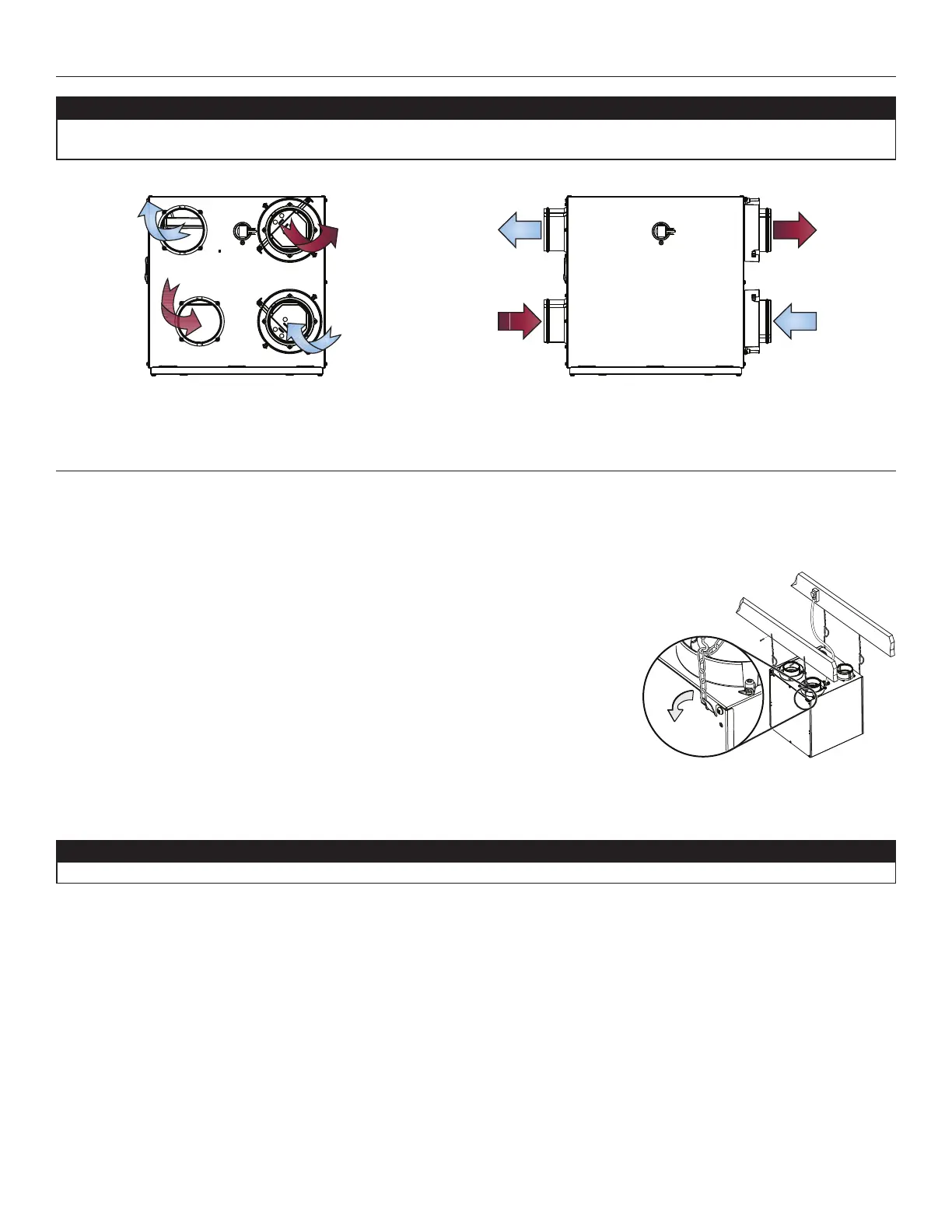 Choisir un endroit approprié où installer l’appareil, puis le suspendre aux solives à l’aide des 4 chaînes et ressorts fournis.