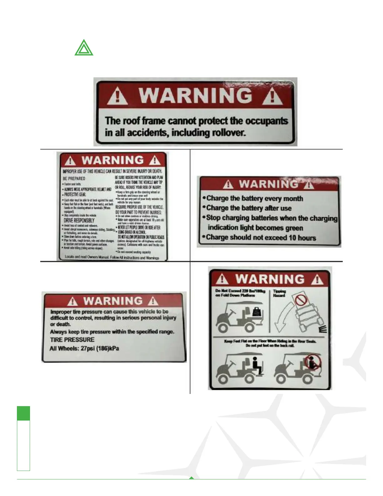 Failure to operate the vehicle as instructed can cause collision, loss of control or roll