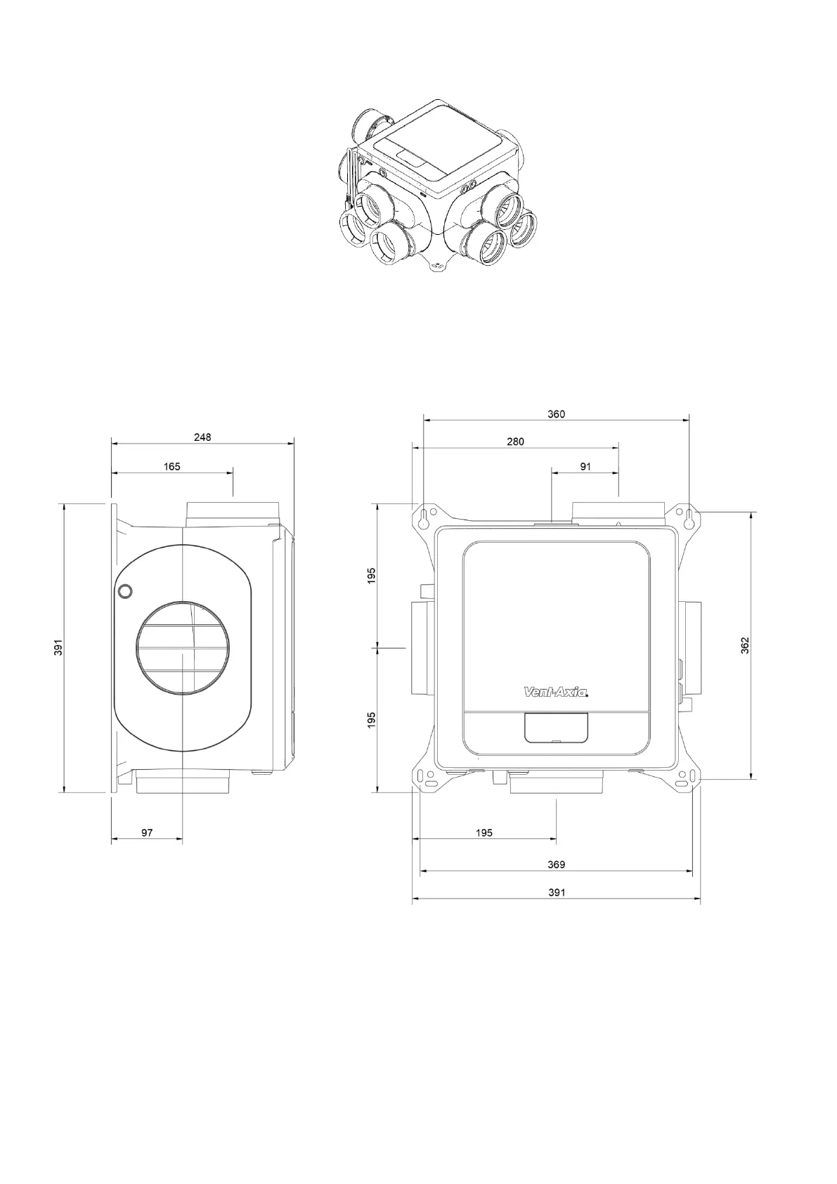 Diamètre des manchons : 125 mm. Adaptateurs auxiliaires de 125 à 150 mm disponibles.