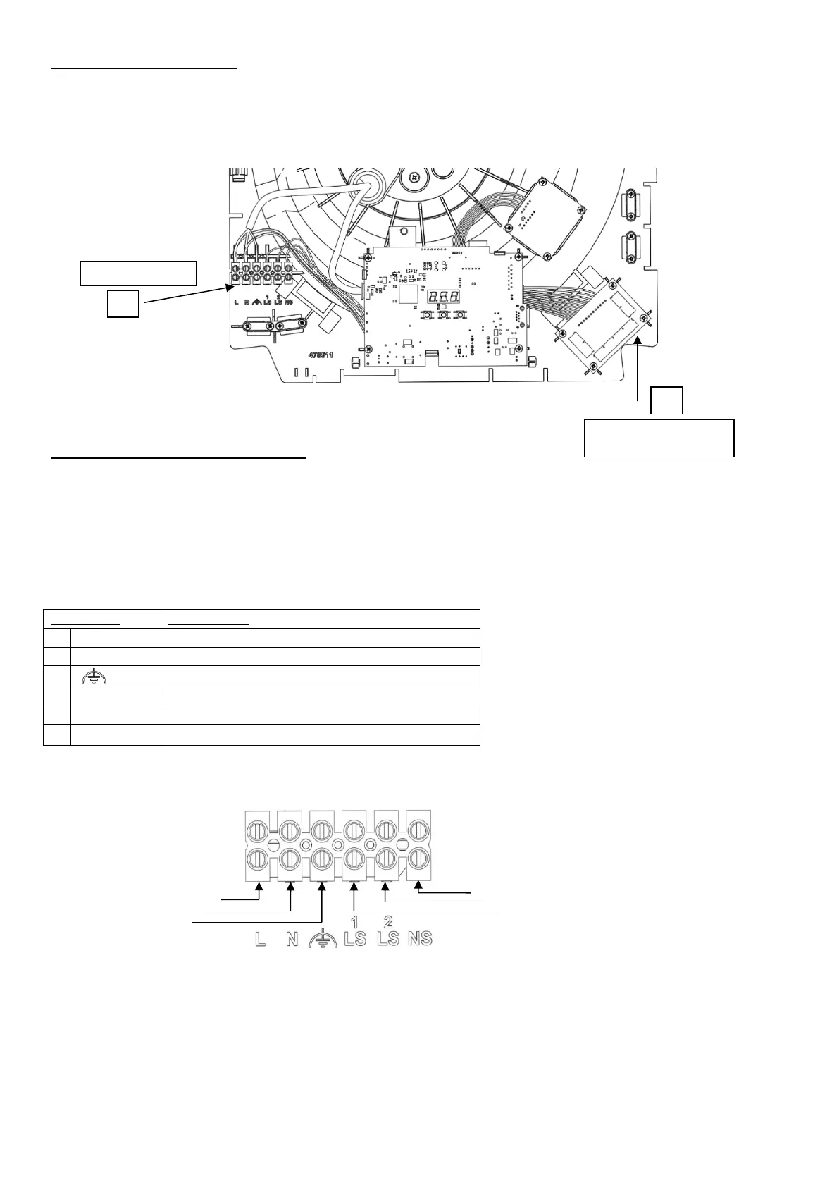 De LS1-, LS2- en NS-aansluitklemmen (A) zijn elektrisch gescheiden.