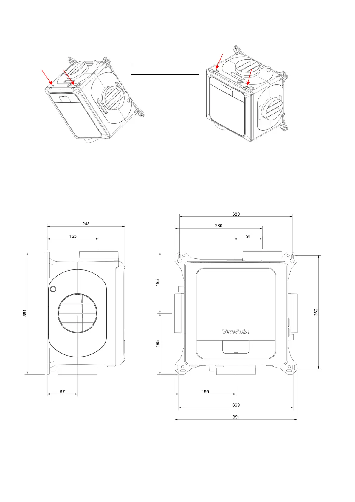 To maintain the IPx2 rating of the unit, the unit must not be mounted with the cover removal slots