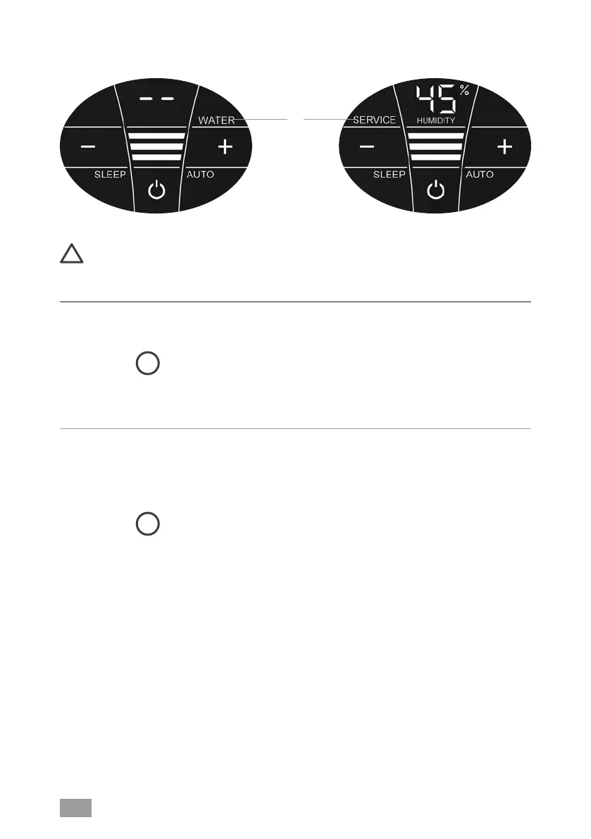 一旦下面部件内水量过少,设备将自动关闭,WATER显 示 出 现 。在