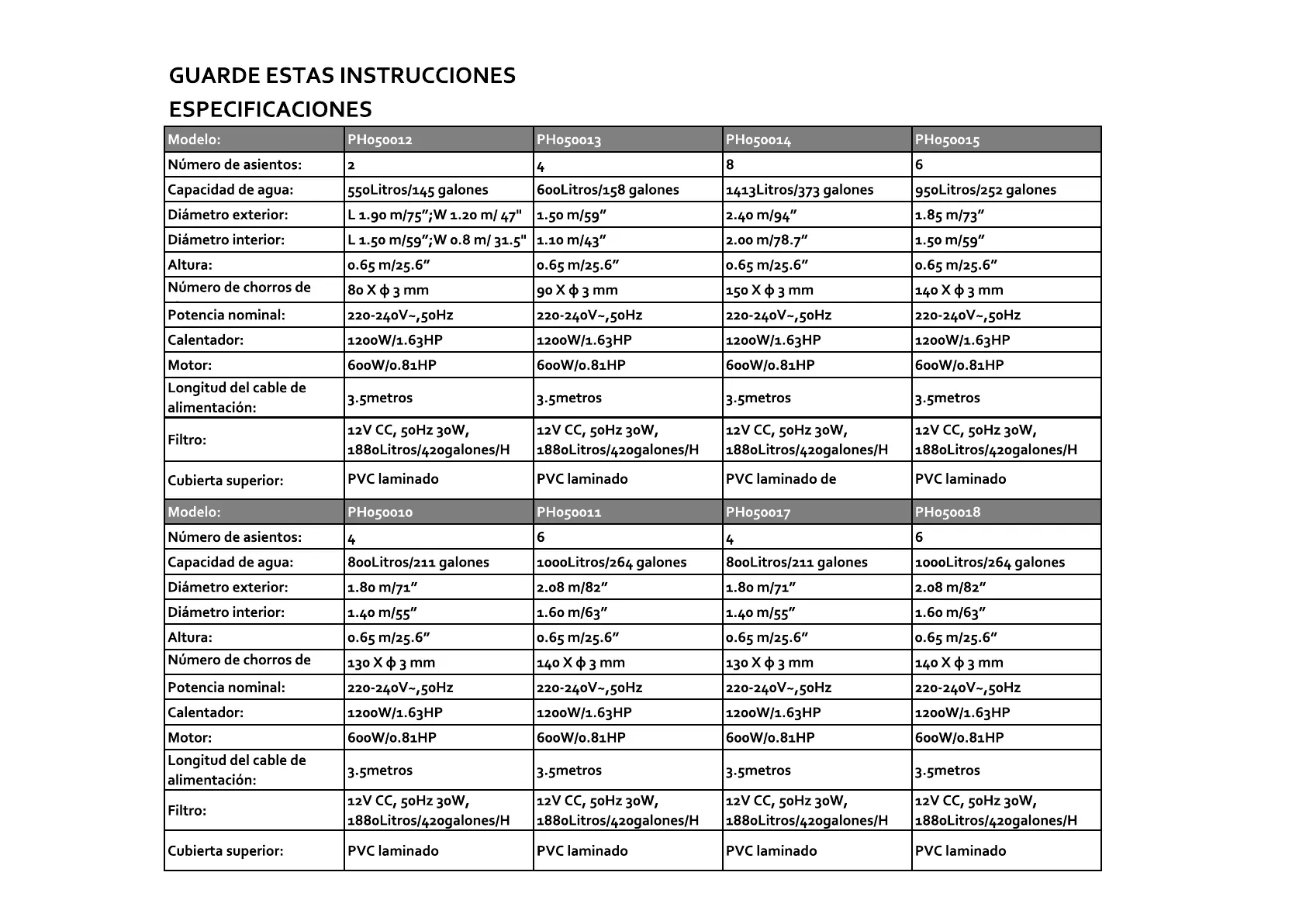 ESPECIFICACIONES