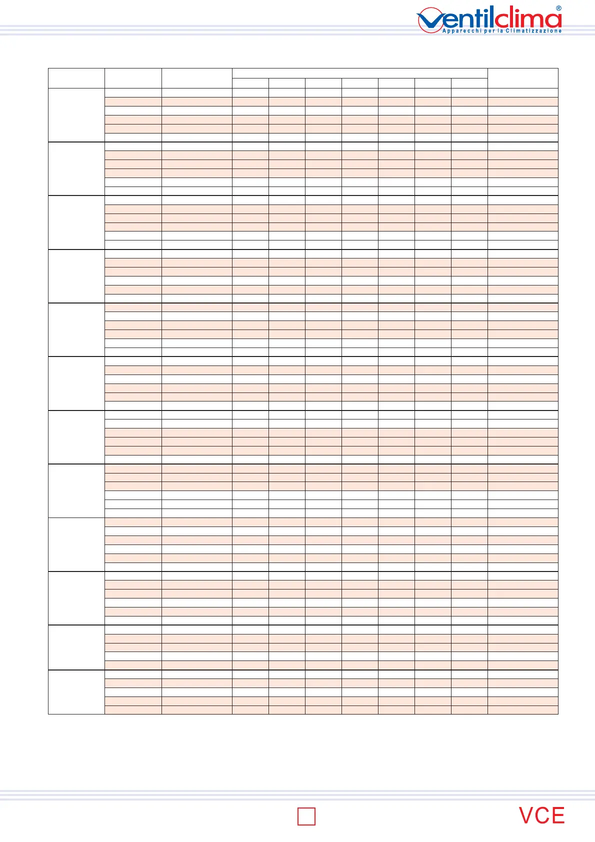 Data indicated as min, med, max, concern the 3 standard speeds set at the factory. upon customer request other 3 speeds among the 6 speeds