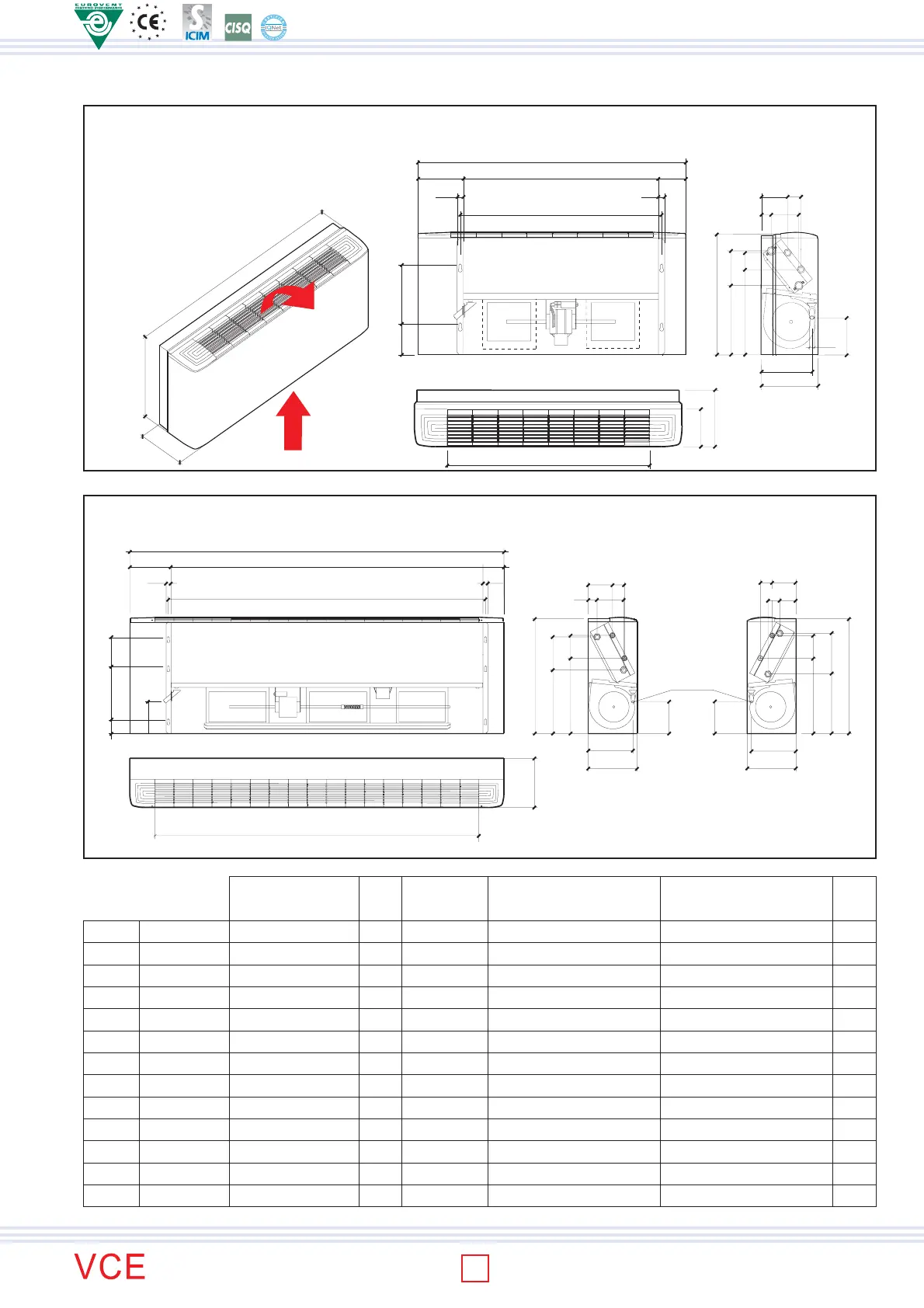 N.B.: On the models VCE100, VCE110 and VCE120 the fold on the cabinet is not foreseen!