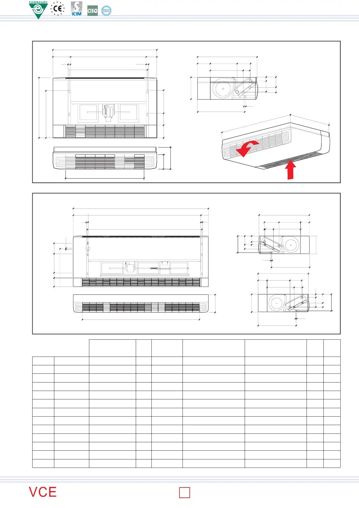 VERSIONE 1 - Horizontal ceiling models with cabinet (bottom air intake with socle)
