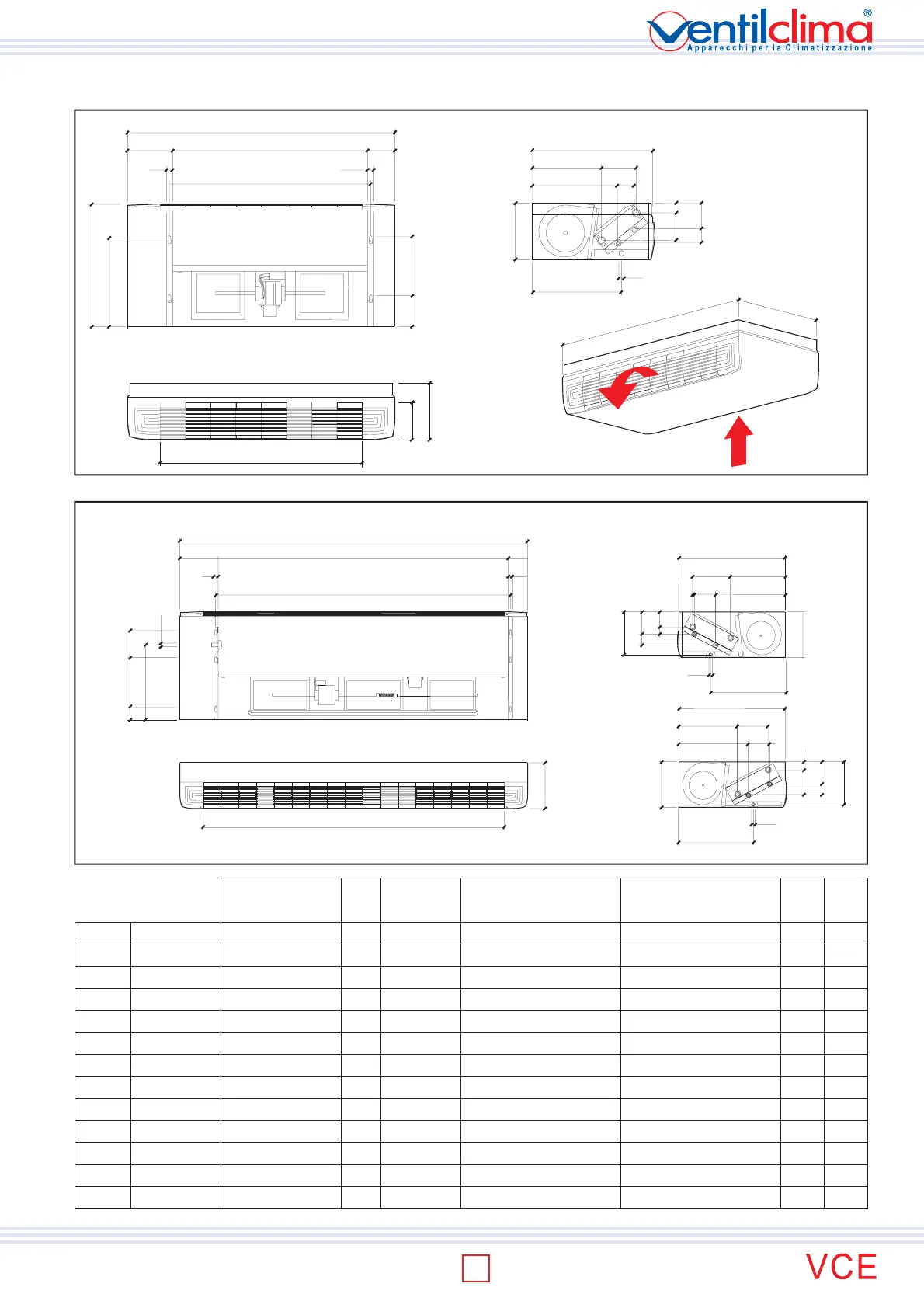 VERSIONE 9 - Horizontal ceiling models with cabinet (bottom air intake with socle)