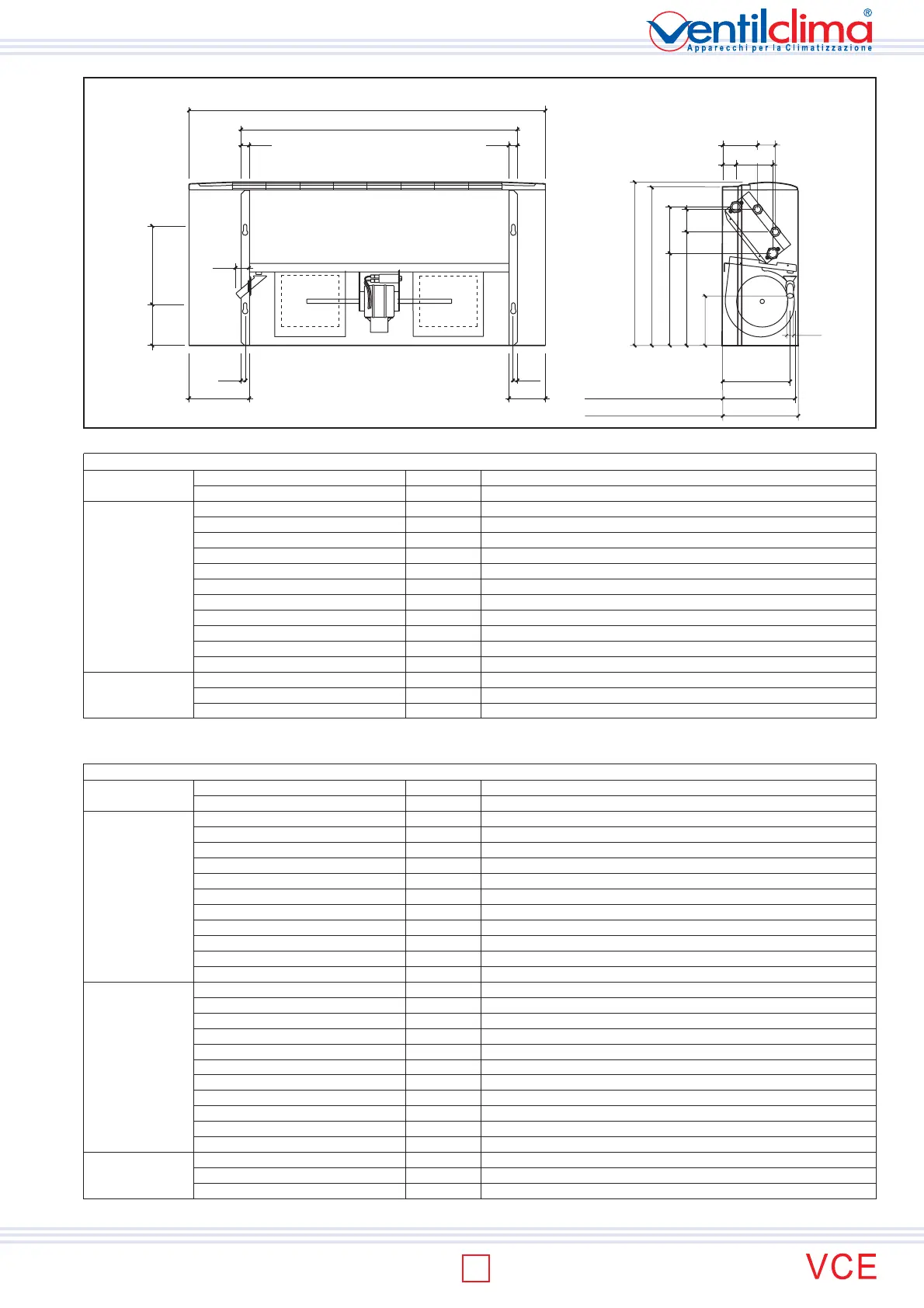 FAN-COIL GENERAL DIMENTIONS FOR 2 PIPE SYSTEM (VCE10-60)